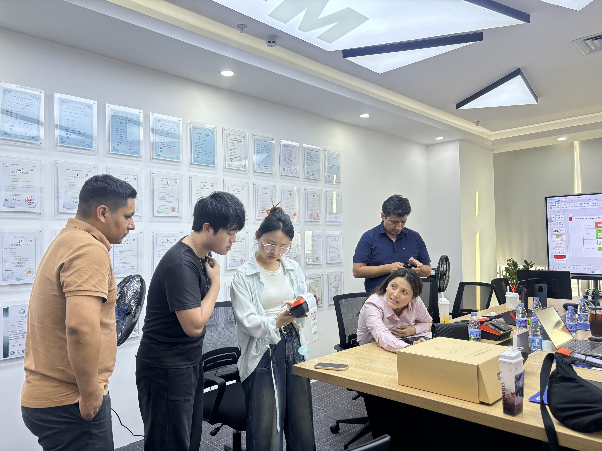 2026年4月21日,深圳通亮智能设备有限公司(品牌:NORYOX)热烈接待秘鲁经销商代表团。双方围绕拉美商用终端的落地需求、产品本地化适配方向以及后续合作计划展开交流。来访期间,秘鲁代表团重点了解NORYOX **NB65标签版**与**NB80T POS**两款手持终端,并就其在秘鲁市场的应用优势与部署方式进行深入沟通。