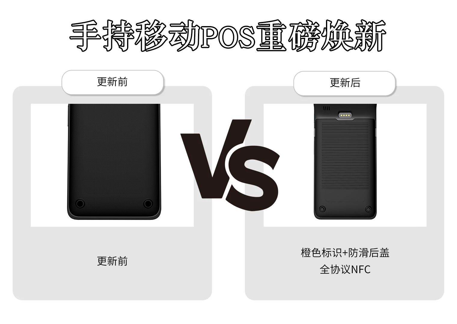 亮点二:电池后盖升级,防滑耐用。针对移动收银后盖松动、易打滑问题,采用高强度工程塑料后盖,卡扣牢固、贴合紧密,耐碰撞易拆装;后盖新增齿痕设计,防滑且提升质感。搭配3.8V 6400mAh大容量电池,彻底解决电量焦虑,保障经营不中断。